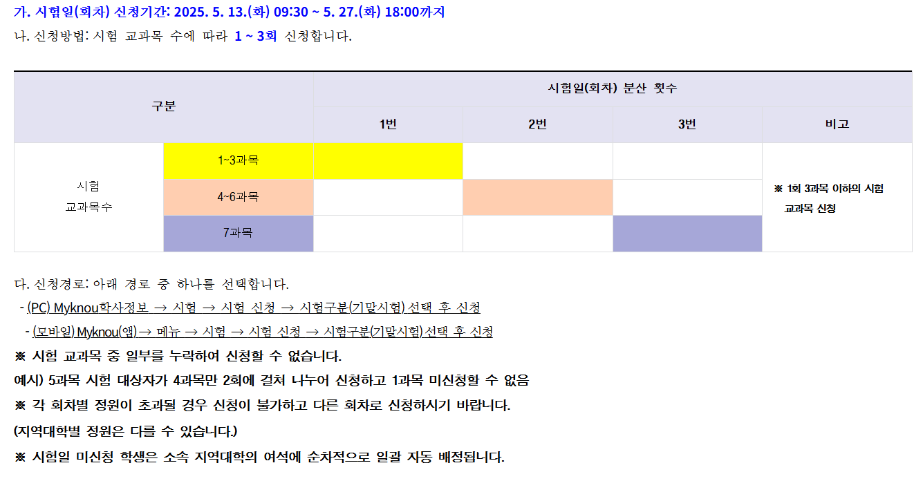 한 회차에 최대 3과목을 시험칠 수 있으며,