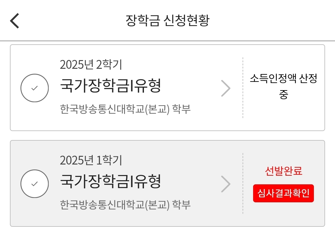 국가장학금 소식을 전달 받고,