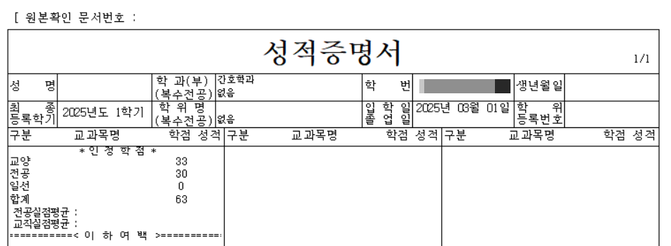 [간호사의 편입생 생활] 성적증명서 발급 본문