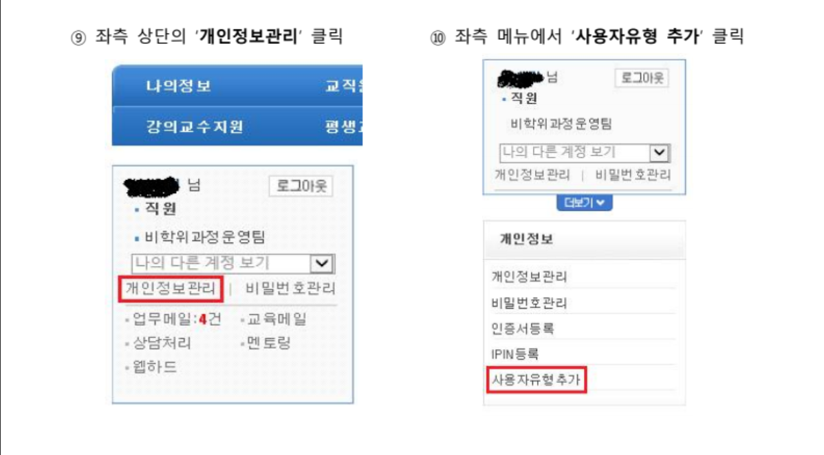 방통대 재학생으로 계정을 바꿔야 중앙도서관을 이용할 수 있다.