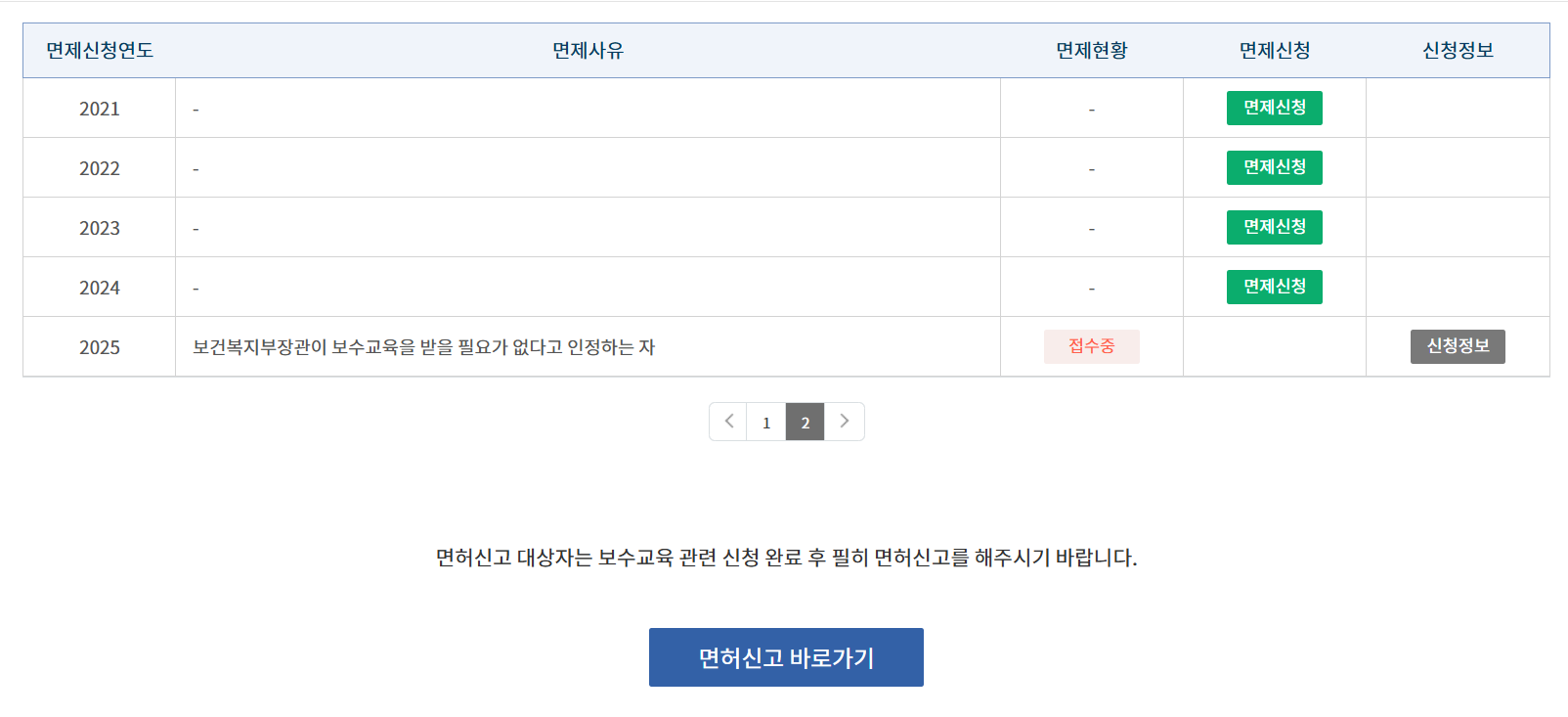 이후 나의 면제신청 상태는 아래와 같이 바뀐다.