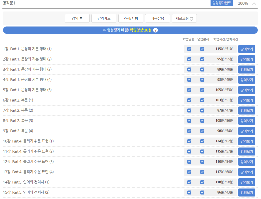 <영작문1> 교양, 과제-시험, "영문법 수업" 본문