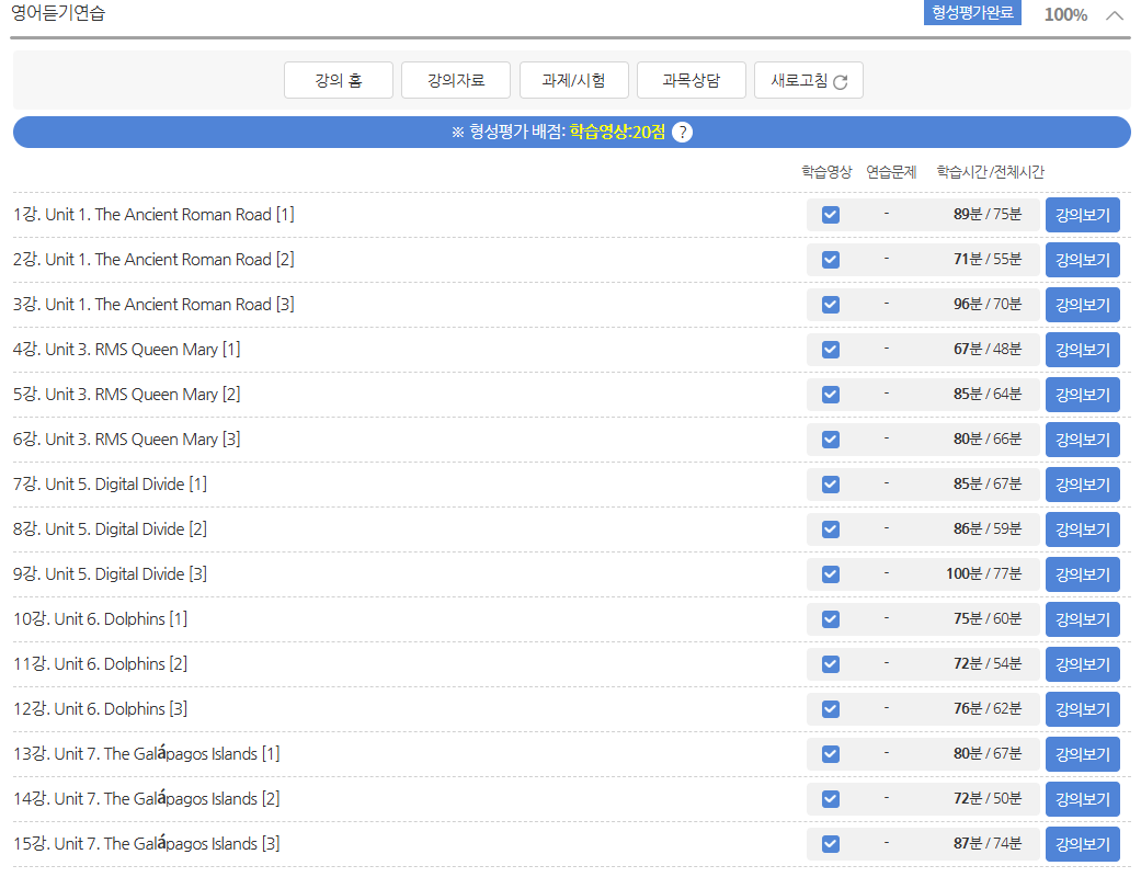 20점 : 강의