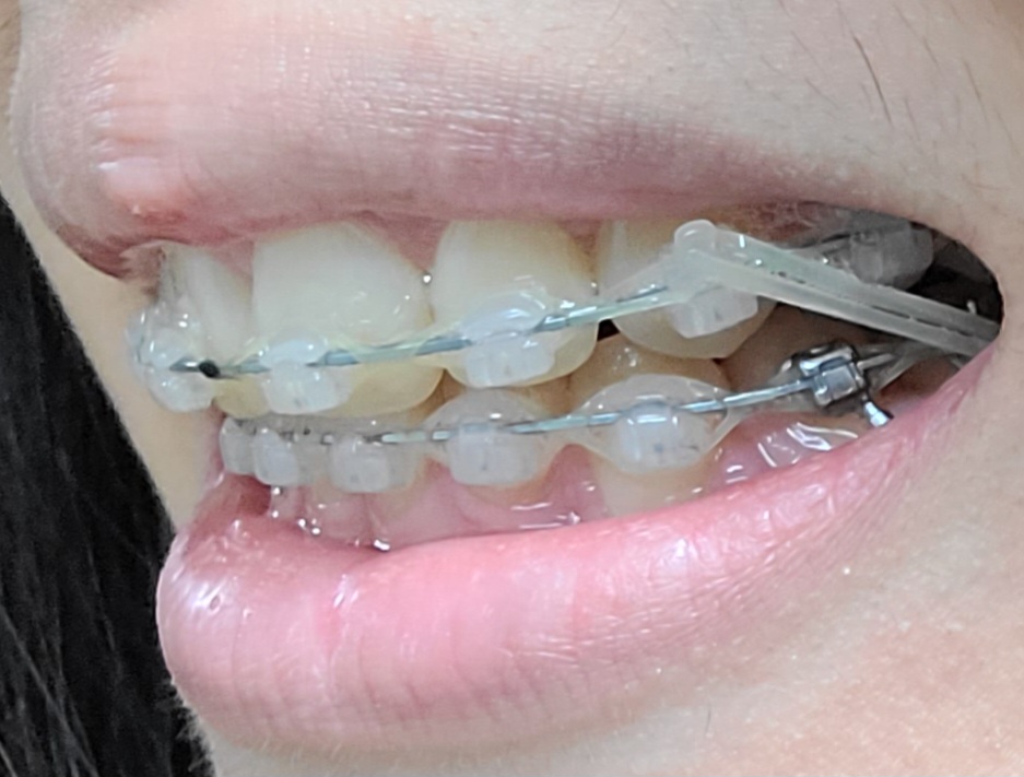윗니의 중앙과 아랫니의 중앙이 미세하게 안 맞아보인다.